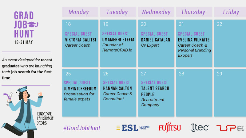 Pozivaju se svi zainteresirane studenti da se prijave na virtualni događaj u organizaciji Europe Language Jobsa, a održava se od 18. do 31. svibnja 2020. godine. Cilj događaja je omogućiti studentima da se pripreme za tržišne izazove, te da im se olakša pronalazak zaposlenja.
